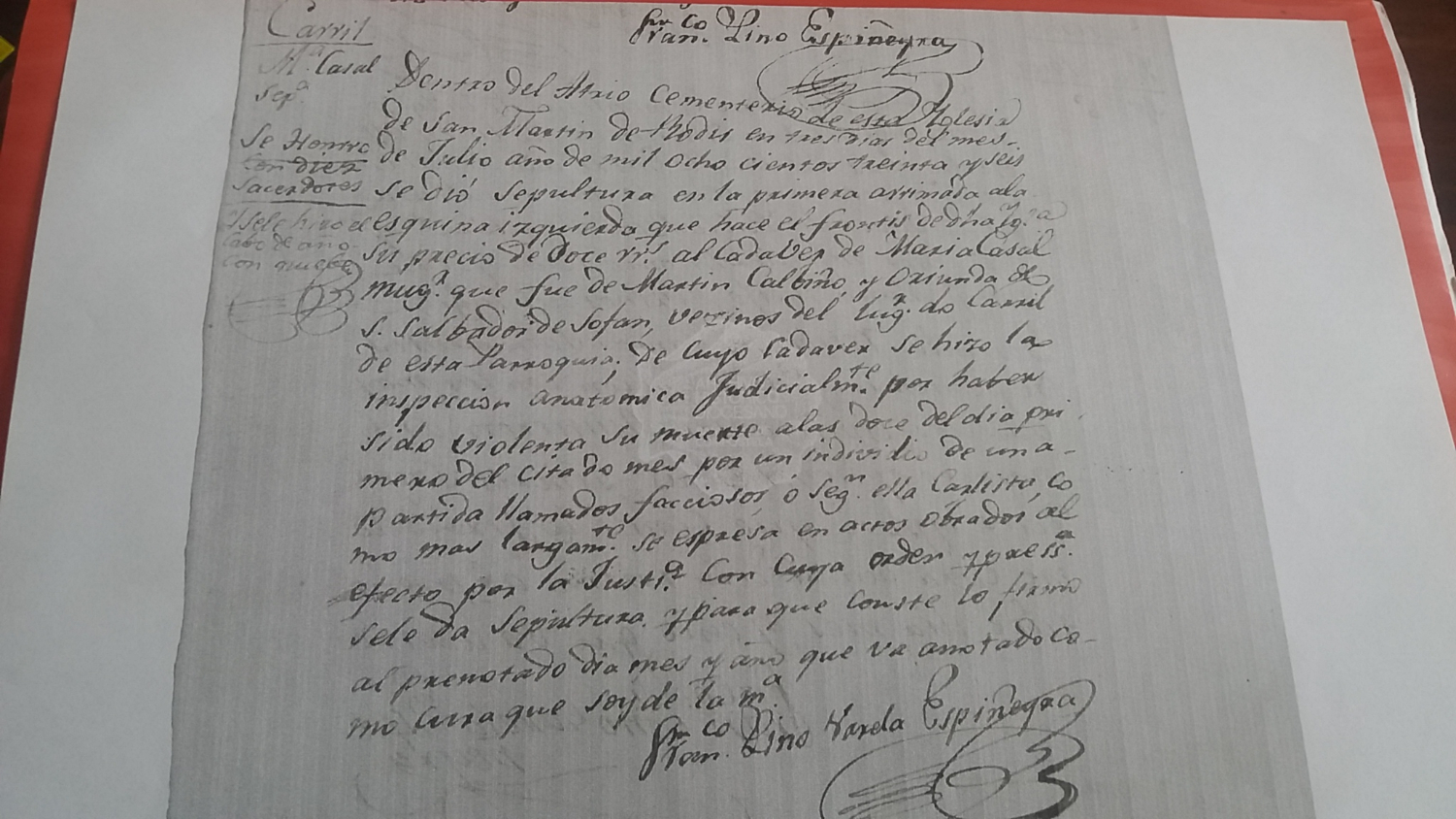 Encontre una defuncion de 1836 de un antepasado mio que coincidie con el nombre de Maria y fallecida por muerte violenta.